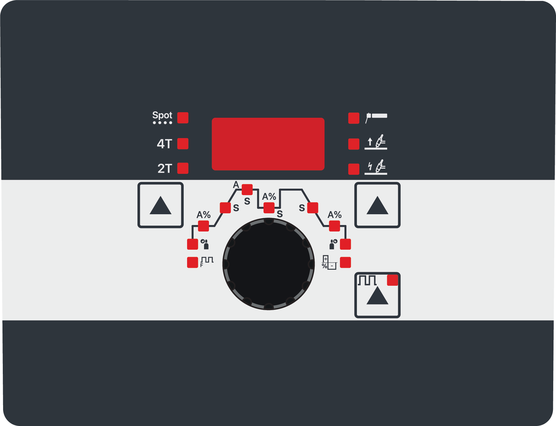 Timed pulse currentsPulse provides precise handling, low heat input, high melting strength and quality weld seams thanks to the independent adjustment of the duration of the pulse top current and bottom current.