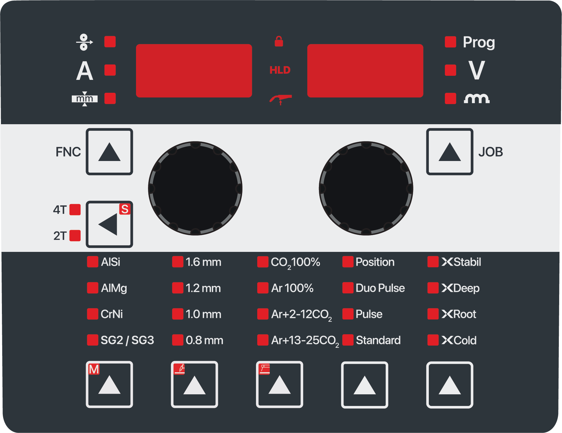 Function table for MIG/MAG, TIG and MMA welding, allowing advanced settings to be adjusted as needed. Maximizes the welding experience.