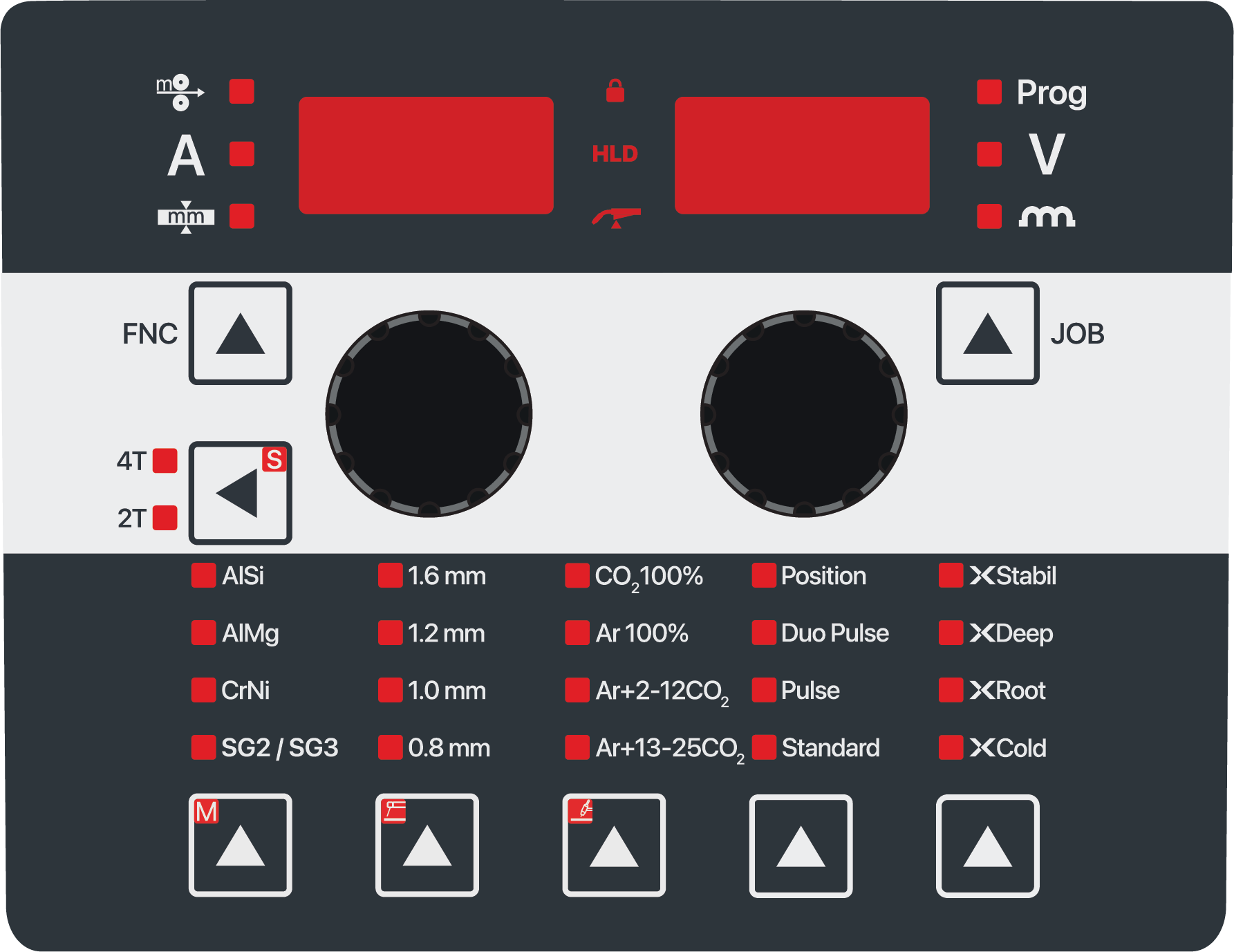 Таблица функций для сварки MIG/MAG, TIG и MMA, позволяет, при необходимости, настраивать дополнительные параметры для максимально тонкой адаптации процессов к сварочной задаче.