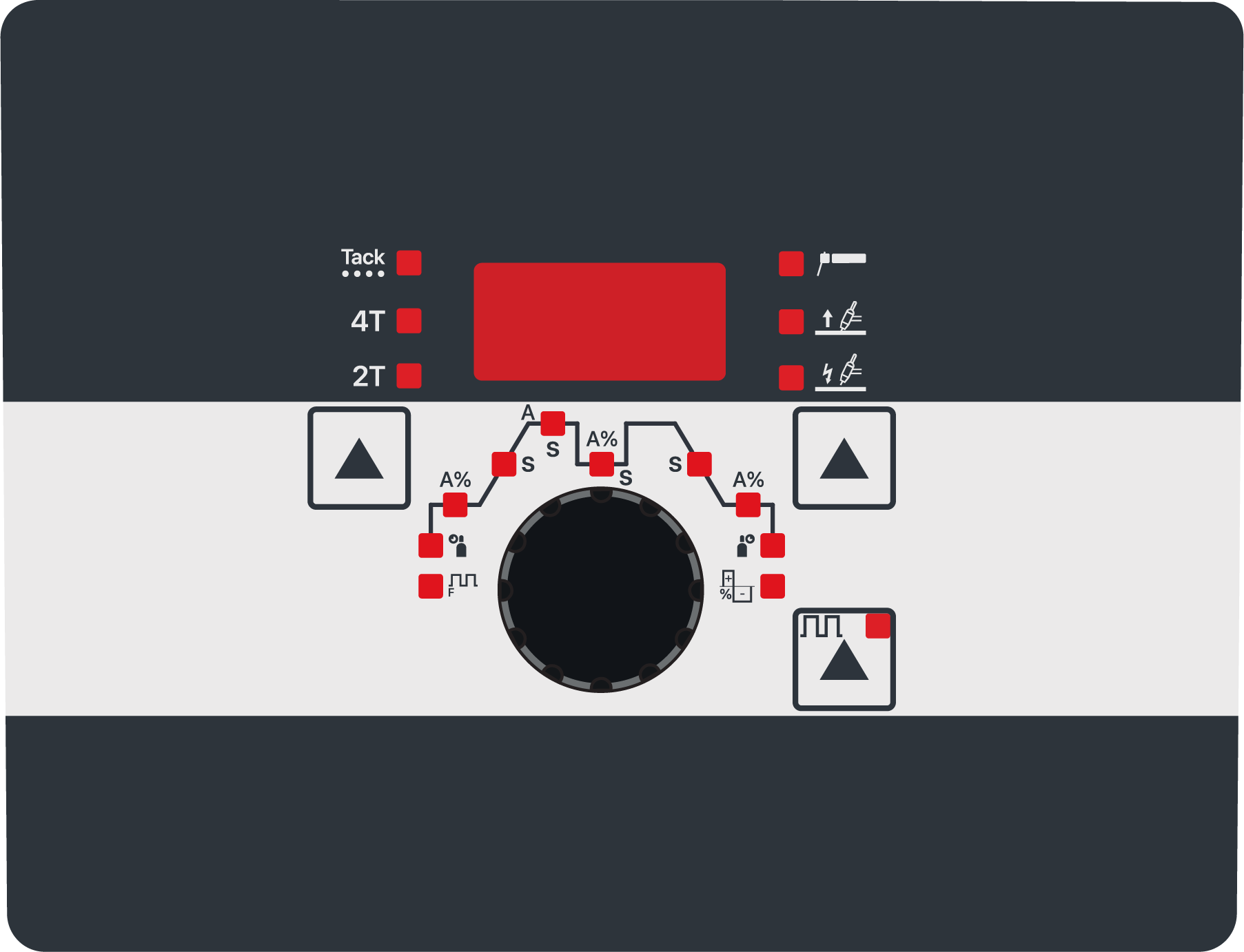 Süreli pulse akımısPulse, pulse üst akımı ve alt akımının sürelerinin bağımsız olarak ayarlanabilmesi sayesinde hassas kullanım, düşük ısı girdisi, yüksek erime gücü ve kaliteli kaynak dikişleri sağlar.